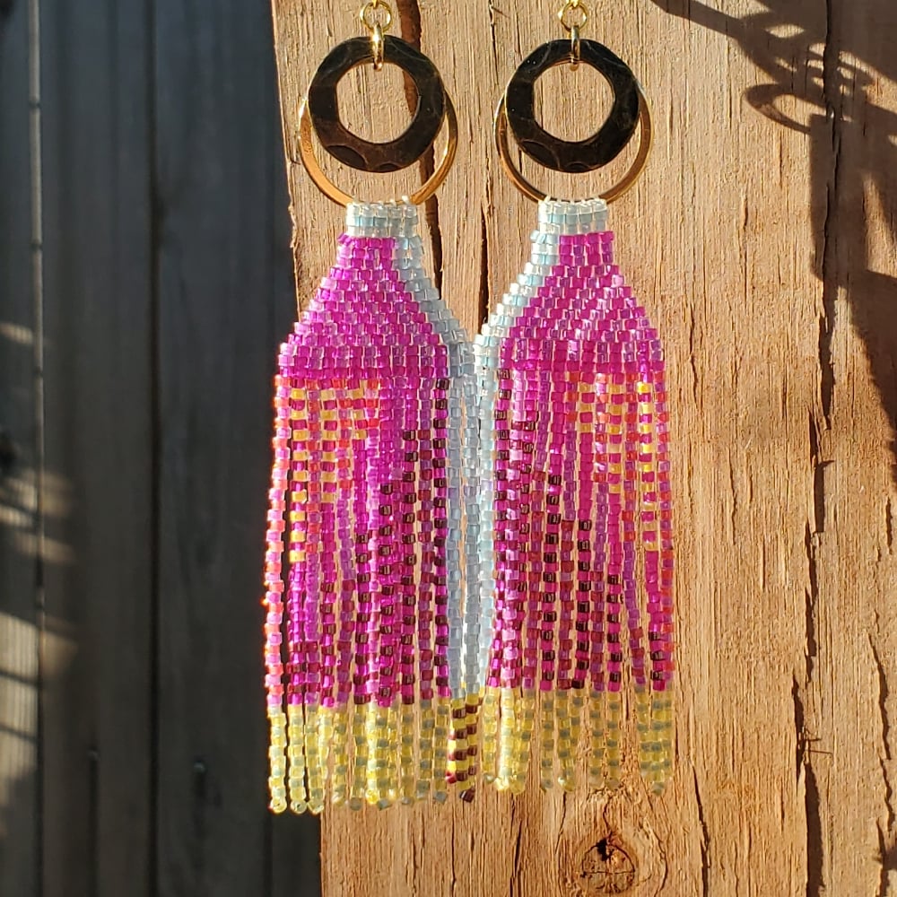 miyuki delicas, blacklight beads, nylon, metal findings, gold plated leverback hooks
